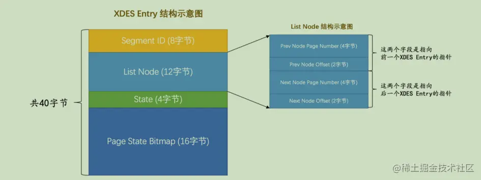 - Pre Node Page Number 和 Pre Node Offset 的组合就是指向前一个 XDES Entry 的指针
