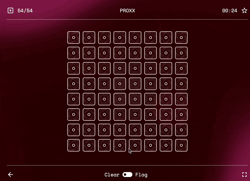 开局可以选择游戏难度,设置宽/高和黑洞数量。玩家点开一个未知块后,会出现数字或者黑洞,如果是数字的话,则该数字代表周围的黑洞数量,比如「1」则代表该数字周围的块背后有一个黑洞,如果点到黑洞则游戏结束。左上角显示的是未知块的数量,右上角是耗费/最佳时间,下面的 switch 按钮则可以切换到标记模式。