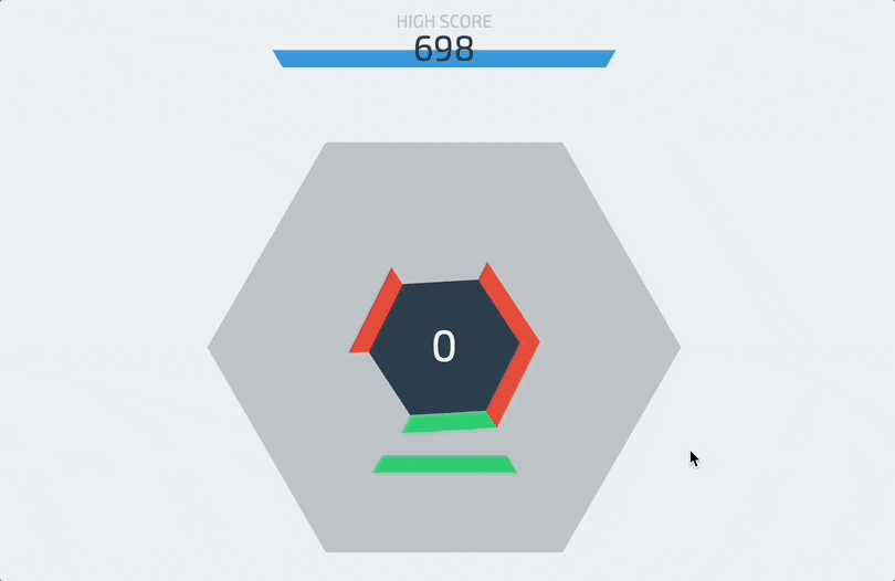 玩家可以通过 左/右 方向键旋转六边形,让下落的彩色条块落在指定的边上,向下方向键可以加快下落速度。通过连接 3 种或以上相同颜色的块,来清除块并获得积分,连续消除有积分加倍的奖励,当色块突破深灰色六边形时游戏结束。