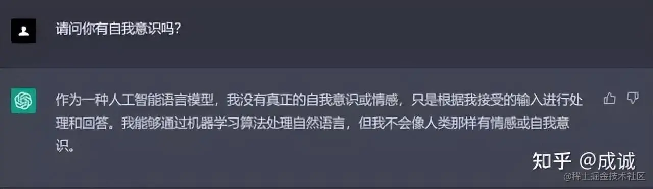 现在的 GPT-4 无论多么强大,所有的知识都是人类输入让 AI 学习的,尤其是跟现实、物理世界相关的知识,这些知识一定是对的吗?不一定。所以 AI 拥有自我意识的一个判断标准是 AI 是否有主动探索、实验来验证自己学到的知识的意愿和行为,以及对未知知识和现象主动求索的意图。
