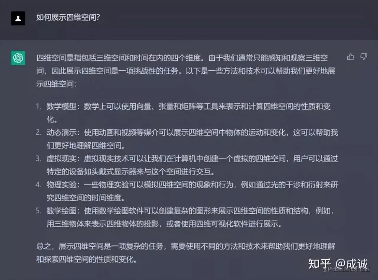 想看他如何理解这个很难描述的空间,回答是相对中肯的。如果它能直接展示出来就更好了(未来一定可以)