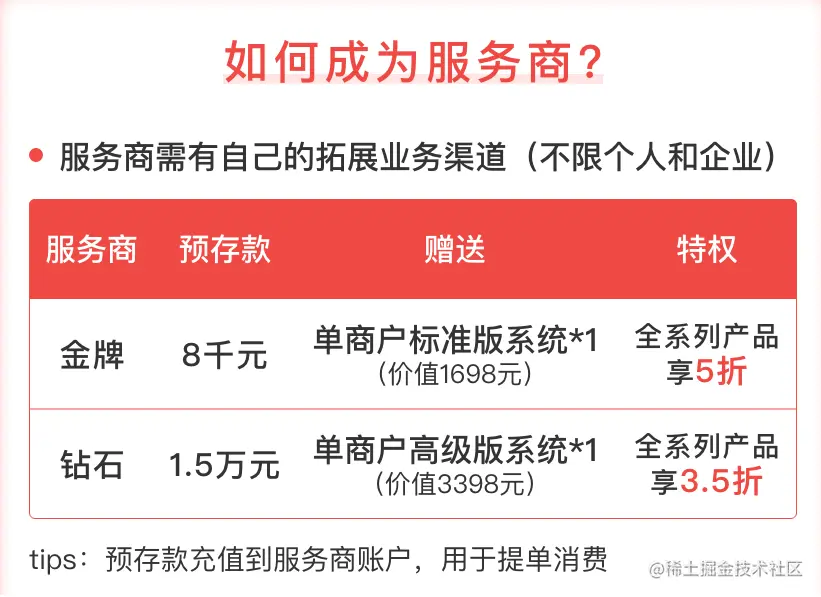 代理服务商,传统意义上的加盟代理,成为服务商的下线,做他们的代理,对接的是服务商,这种模式对技术能力要求没有很高,只需要有自己的业务拓展渠道,推广项目即可,成为代理服务商门槛较低,投入的资金小,风险小。