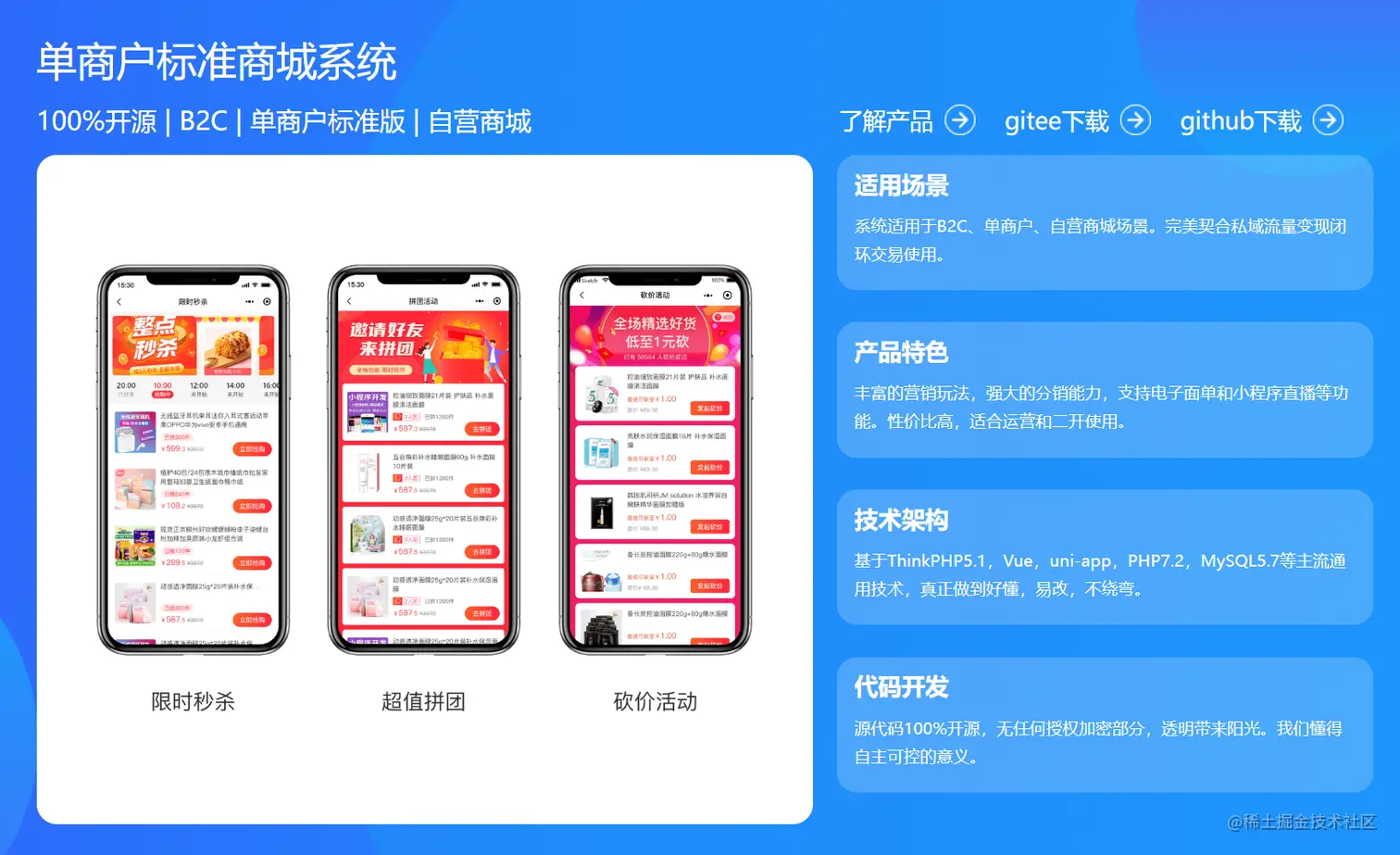 likeshop基于「ThinkPHP + Vue + Nuxt + uni-app」实现的免费开源商城系统,支持H5、小程序、APP,微信支付、支付宝支付、短信、云存储、优惠券、秒杀、拼团、抢购等主流功能,likeshop的产品无论是运营还是二开都是性价比极高,代码100%开源无任何加密的商城系统。