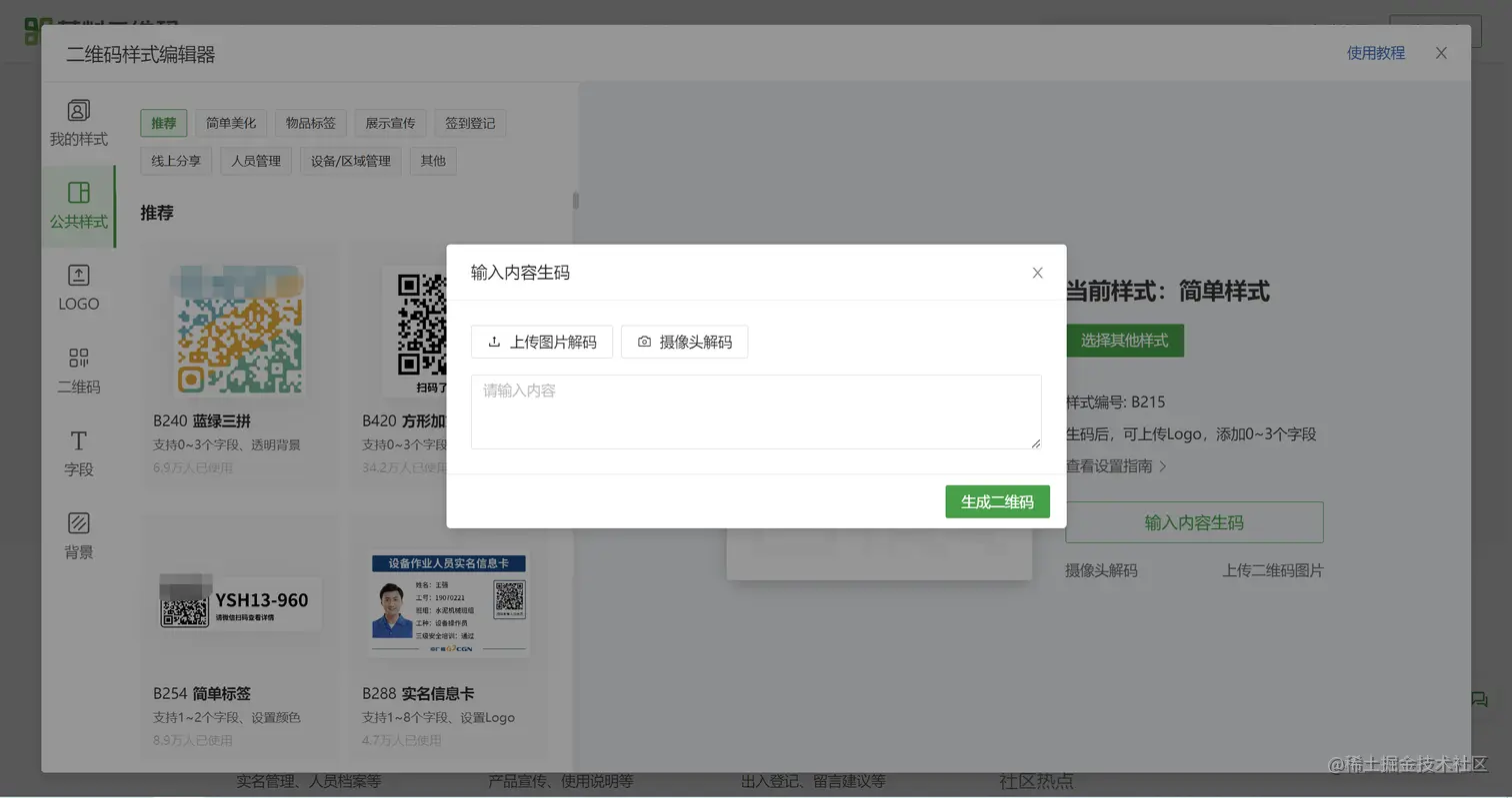 如果客户本身没有二维码,但希望制作出一个产品信息介绍、使用说明等内容的二维码时,可以直接套用平台提供的模板,把需要展示的内容添加编辑器中快速生成一个二维码。