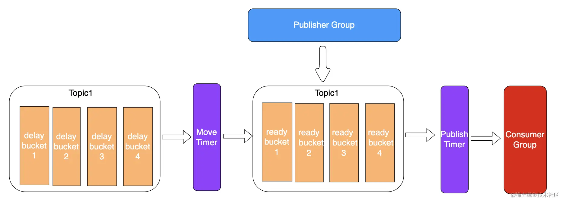 ・消息传输可靠性:消息进入到延迟队列后,保证至少被消费一次。