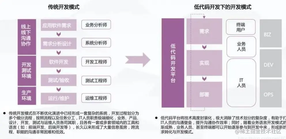 传统开发的整个流程非常冗长,基于低代码平台进行开发,⼀般只用三步就可以完成。企业级的低代码开发实现的是传统软件⼯程到智能软件⼯程的⼀个升级。它解决了传统软件⼯程在开发过程中,业务与开发之间的矛盾及交付时间长的问题。基于低代码平台开发的流程可以使整个软件开发周期缩短了45%,需求修改速度提升了70%,同时人才招聘的压力降低。