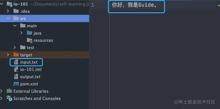 乱码问题这个很容易就可以复现,我们只需要将上面提到的 FileInputStream 代码示例中的 input.txt 文件内容改为中文即可,原代码不需要改动。