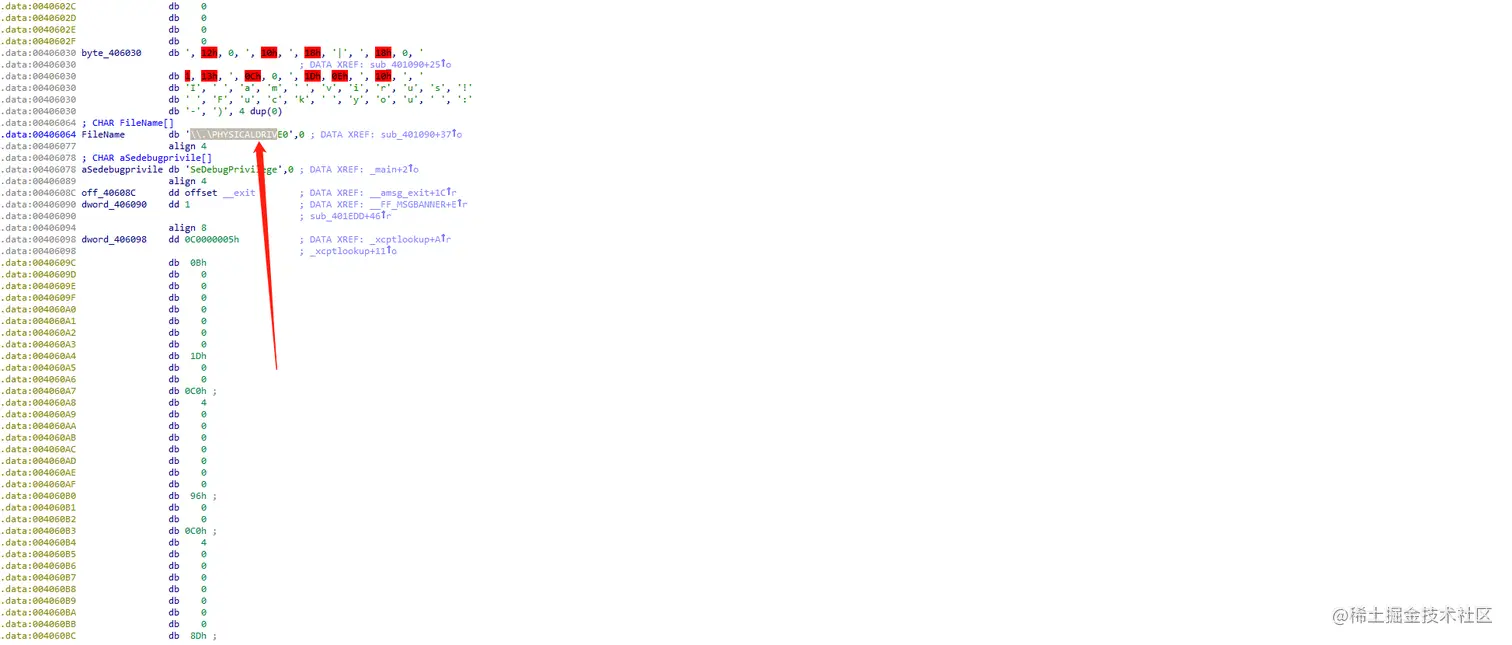 接下来是一个CreateFileA获取句柄,看看FileName: