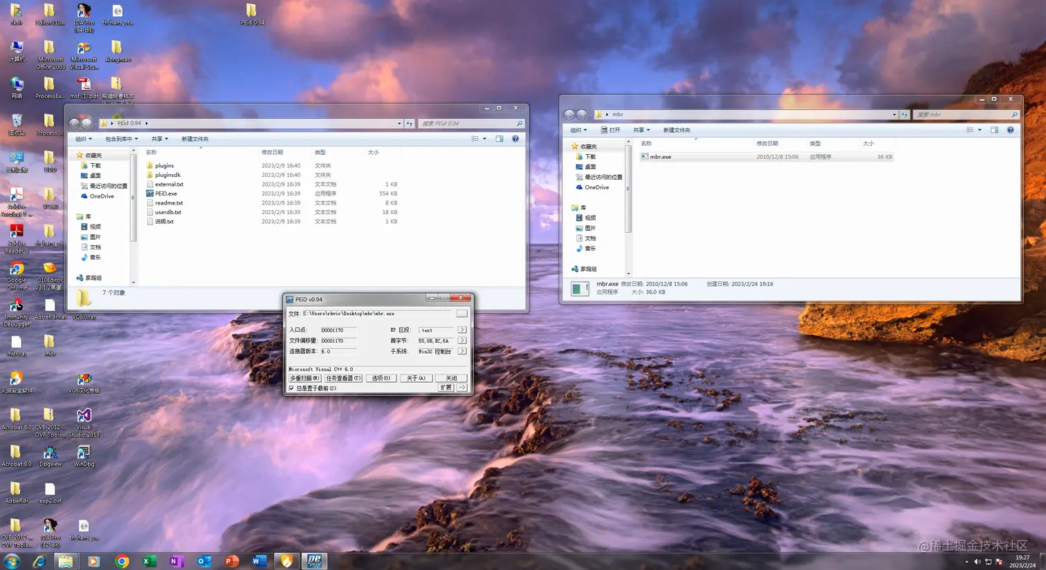 因为这个病毒很简单,所以没有行为分析,直接看源代码就好了,把样本拖入到PEID中,无壳,VC6++写的: