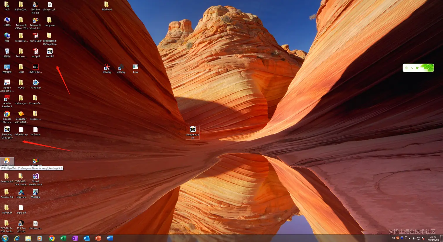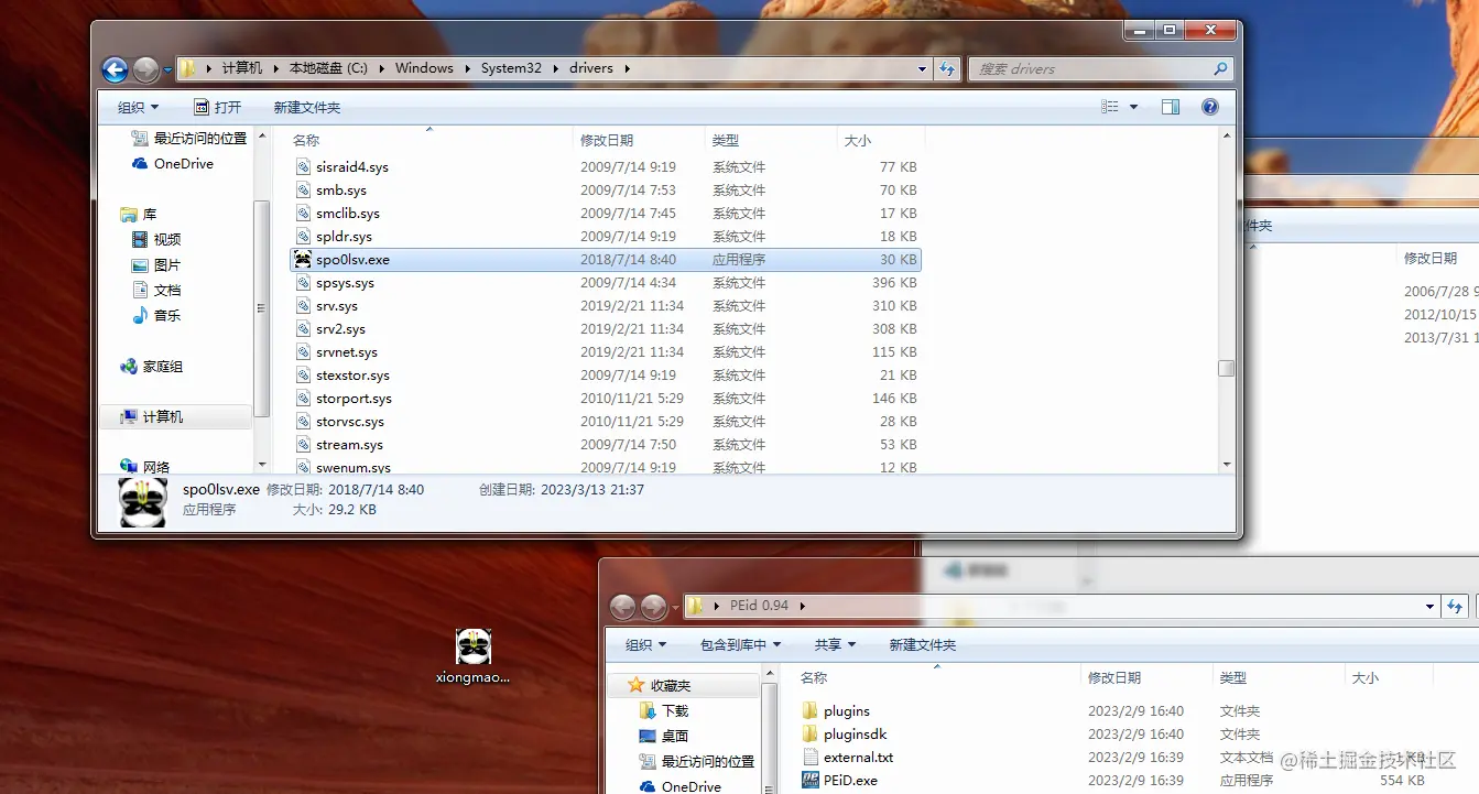 我们找到一个熊猫烧香,在我们虚拟机中运行,查看一下他的特征,他会在这里生成一个子病毒: