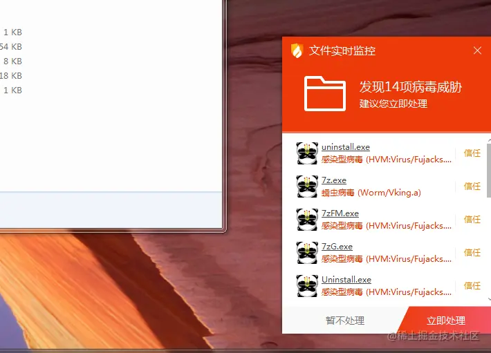 而所有的恶意行为都来源于这个子病毒。根据火绒的检测,可以看到他背后搞了很多花样,在不断的侵染我们的文件。
