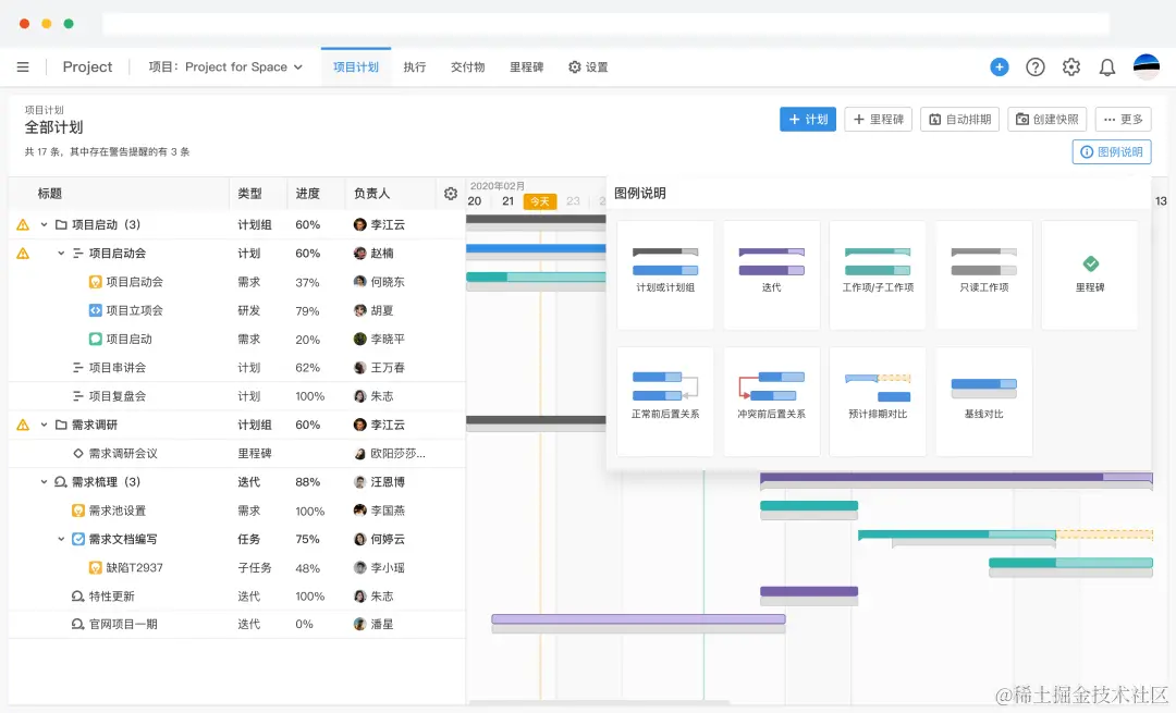 一方面,优艾智合借助 ONES 的**「项目计划」**,实现了从项目到任务的多层级规划,并将拆解好的任务分配给指定的负责人;再标记好里程碑节点,设定好与里程碑相对应的交付物。这样一来,项目经理就能快速监控关键节点的完成情况,同时也能与客户侧保持信息的互联互通,做到进度可控。