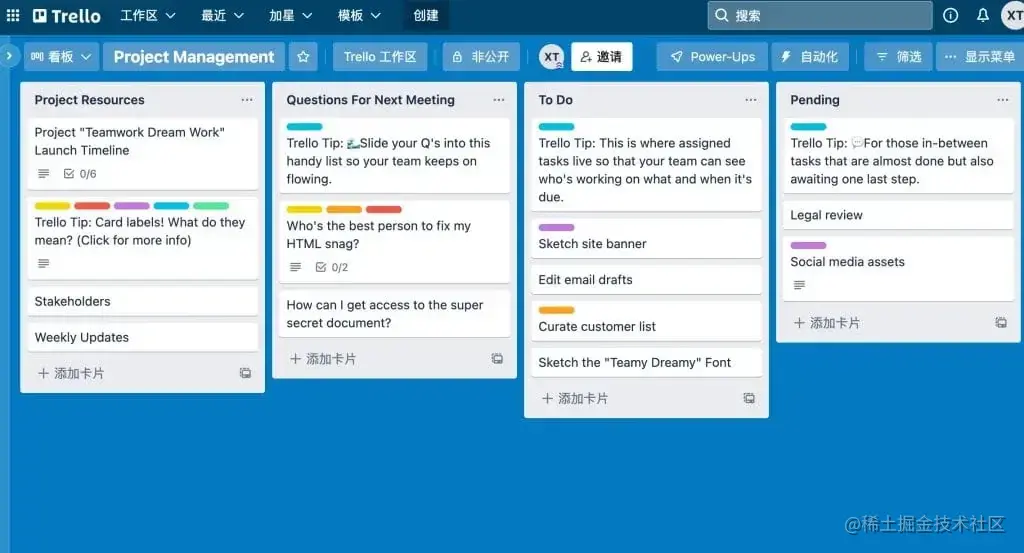 Trello是一款免费的任务管理软件,可以帮助你组织和管理团队的任务、项目和工作流程。它提供了直观的界面和易于使用的功能,可以轻松地创建任务卡片、列和面板,以及追踪任务状态、设置截止日期等。Trello支持多设备同步,可在Windows、Mac、iOS和Android等平台使用。