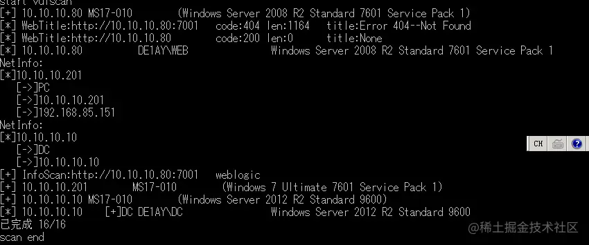 扫描10.10.10.1/24网段,10.10.10.10和10.10.10.201均存在ms17010漏洞