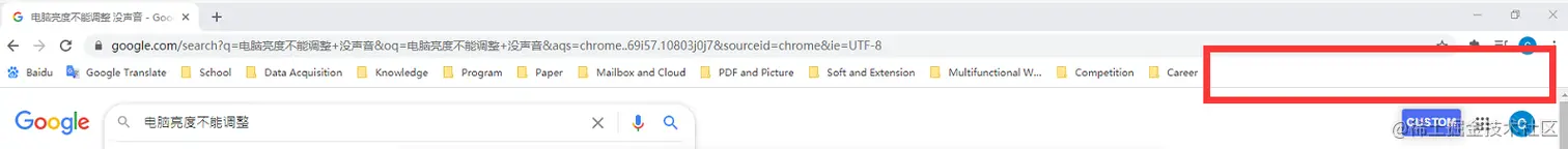 再看应用程序字体。点开浏览器,也可以看到字体显著变小,如下图,原本我的书签菜单是刚好到屏幕最右侧的,现在却出现了红色方框中的情况,即多了空白的一块。