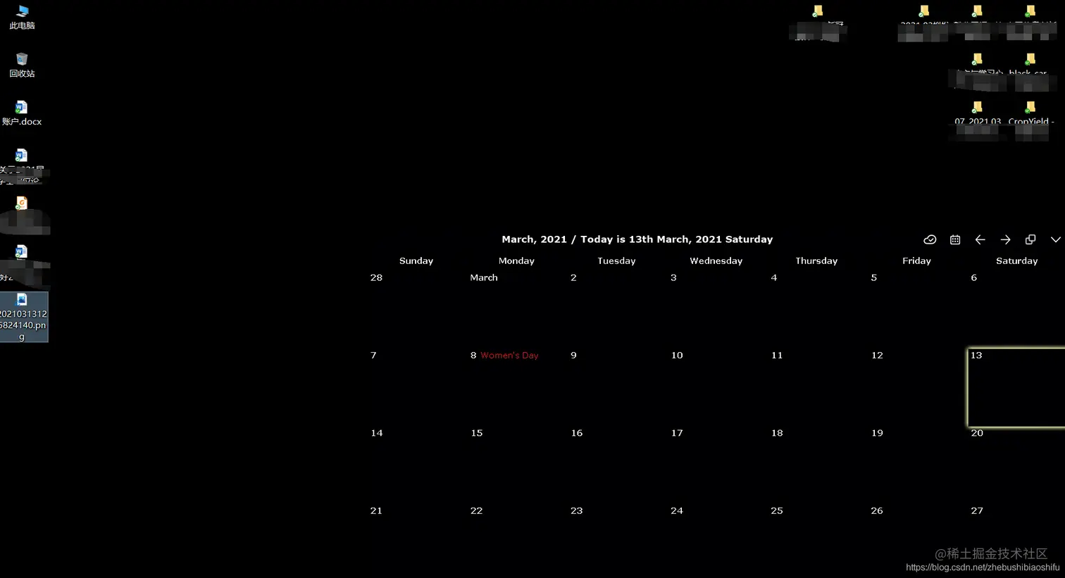 先看系统字体。如下图,是更新完第一次打开电脑后的桌面,可以看到右上角打了马赛克的那几个文件夹,原本都是在屏幕最右侧的,现在却到了右侧稍微靠中间的位置。