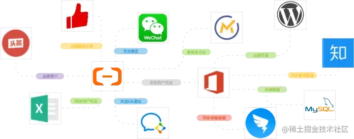通过集简云可以快速扩展您现有系统的功能,例如为您的表单系统增加微信提醒,邮件提醒,短信提醒功能,为您的微信公众号增加赠送卡券同步CRM系统功能,为您的OA办公系统增加逻辑判断与数据存储功能等等。而这一切无需任何技术开发,简单快速地提升您系统的能力。