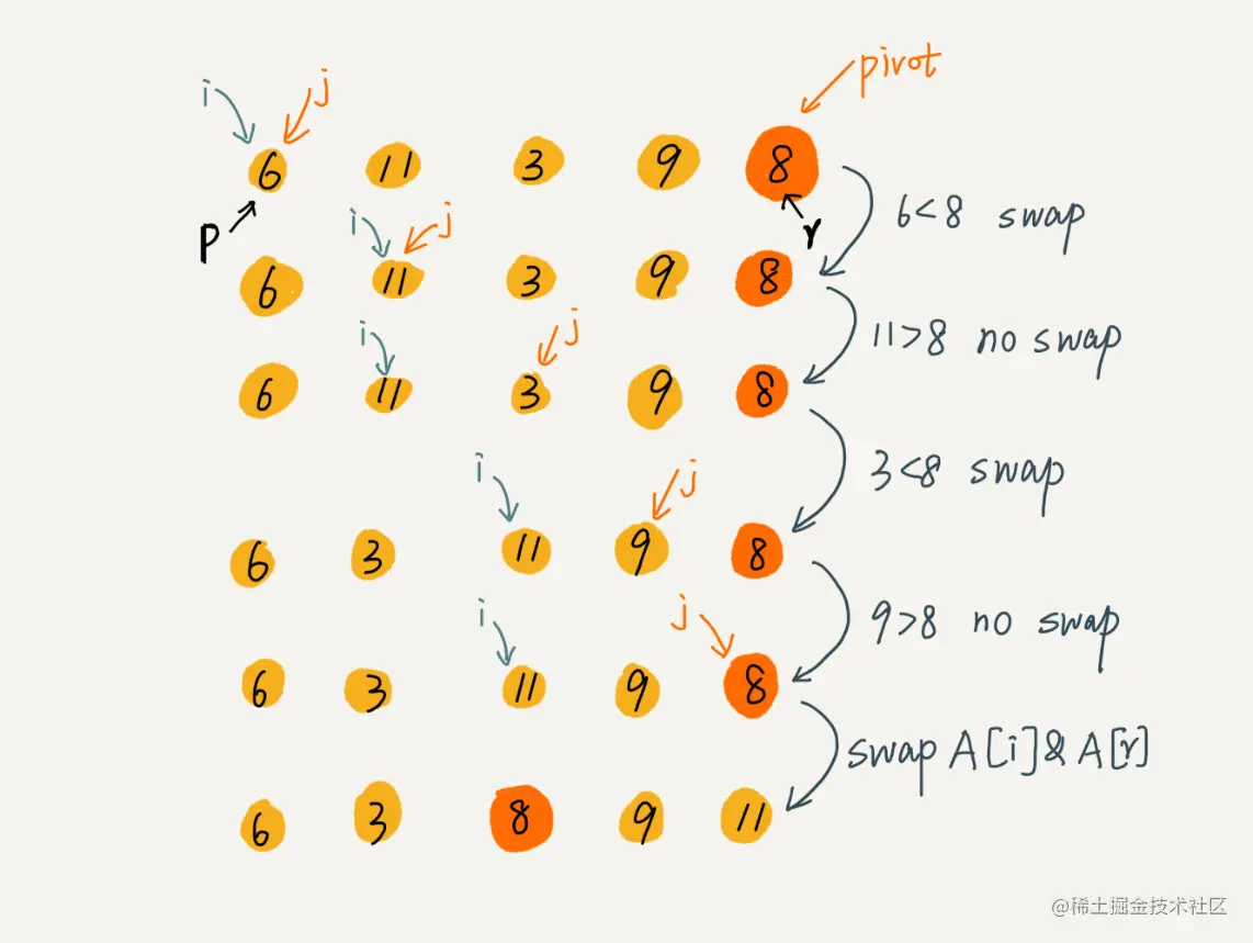 // 当 arr[j] < arr[pivot] 时,交换 arr[i] 和 arr[j]