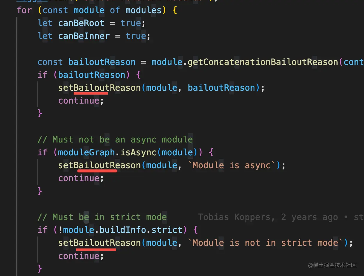 这个插件会遍历所有模块,把不适合 scope hositing 的模块过滤掉,同时记录下不合适的原因。