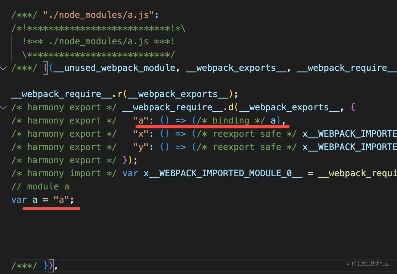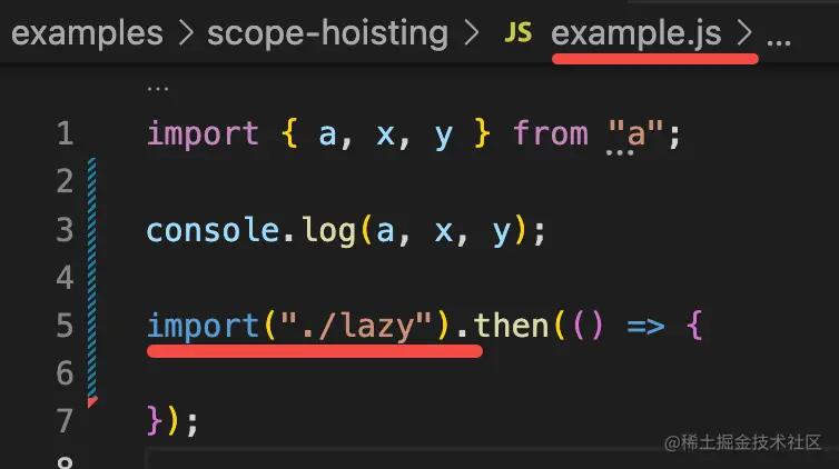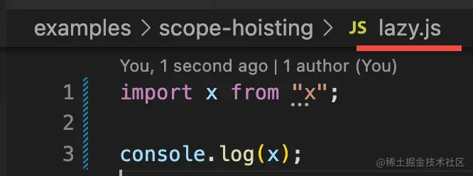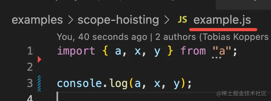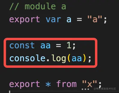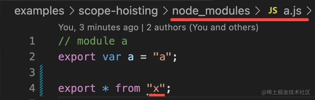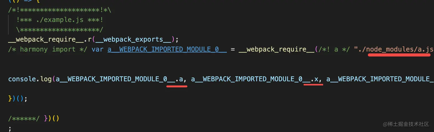 example 和 a 被 hositing 到一个模块了,而 x 单独引入的。