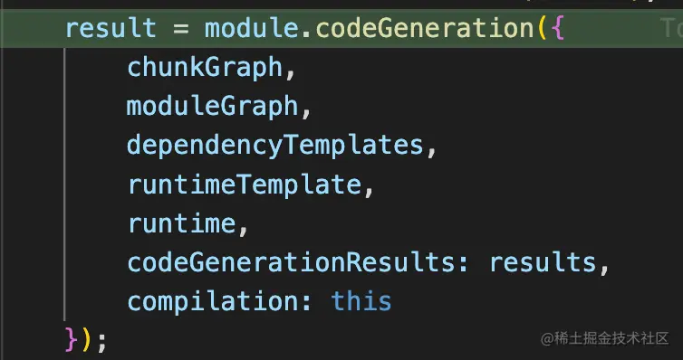 代码生成的时候会调用每个 module 对象的 codeGeneration 方法: