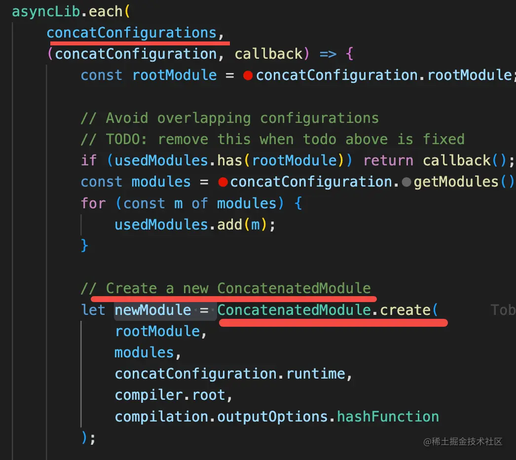 然后遍历这个对象,生成 ConcatenatedModule 类型的 module 替换之前的 module。