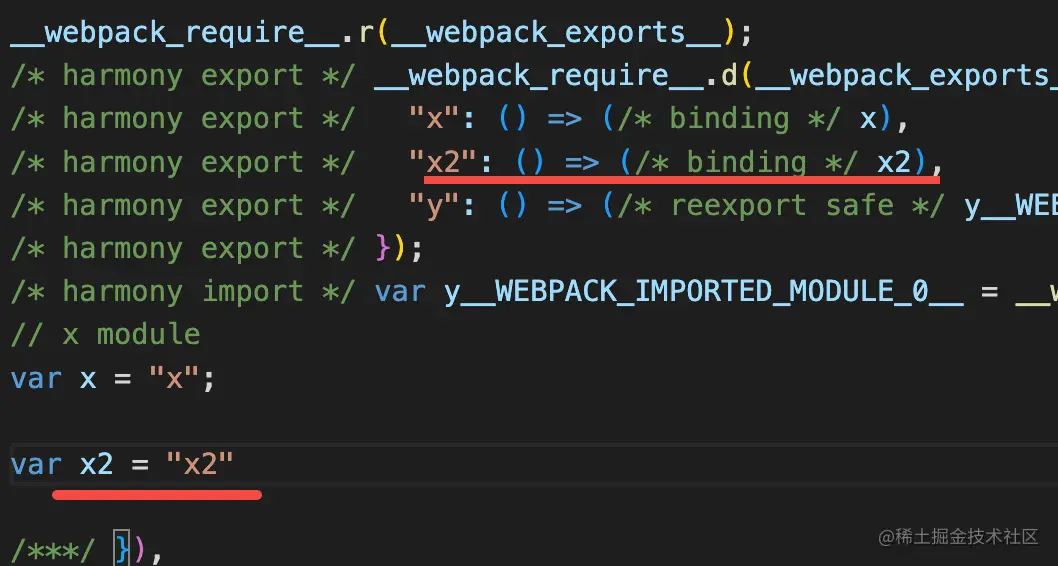 比如 x 模块里导出了一个 x2 变量,这个变量没有被使用: