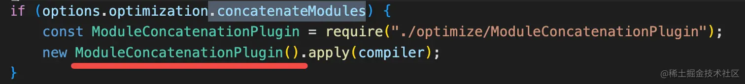 而开启这个选项的时候,内部会应用 ModuleConcatenationPlugin 这个插件: