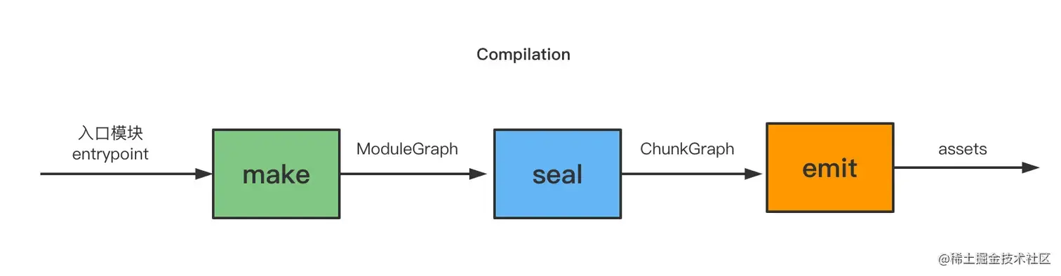 emit 阶段把每个 chunk 使用模版打印出来,生成代码,也就是 assets。