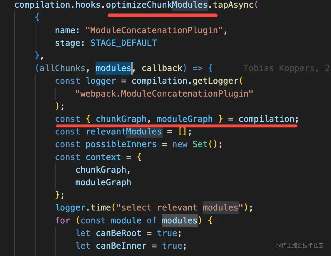 ModuleConcatenationPlugin 这个插件在 optimizeChunkModules 这个 hook 生效,