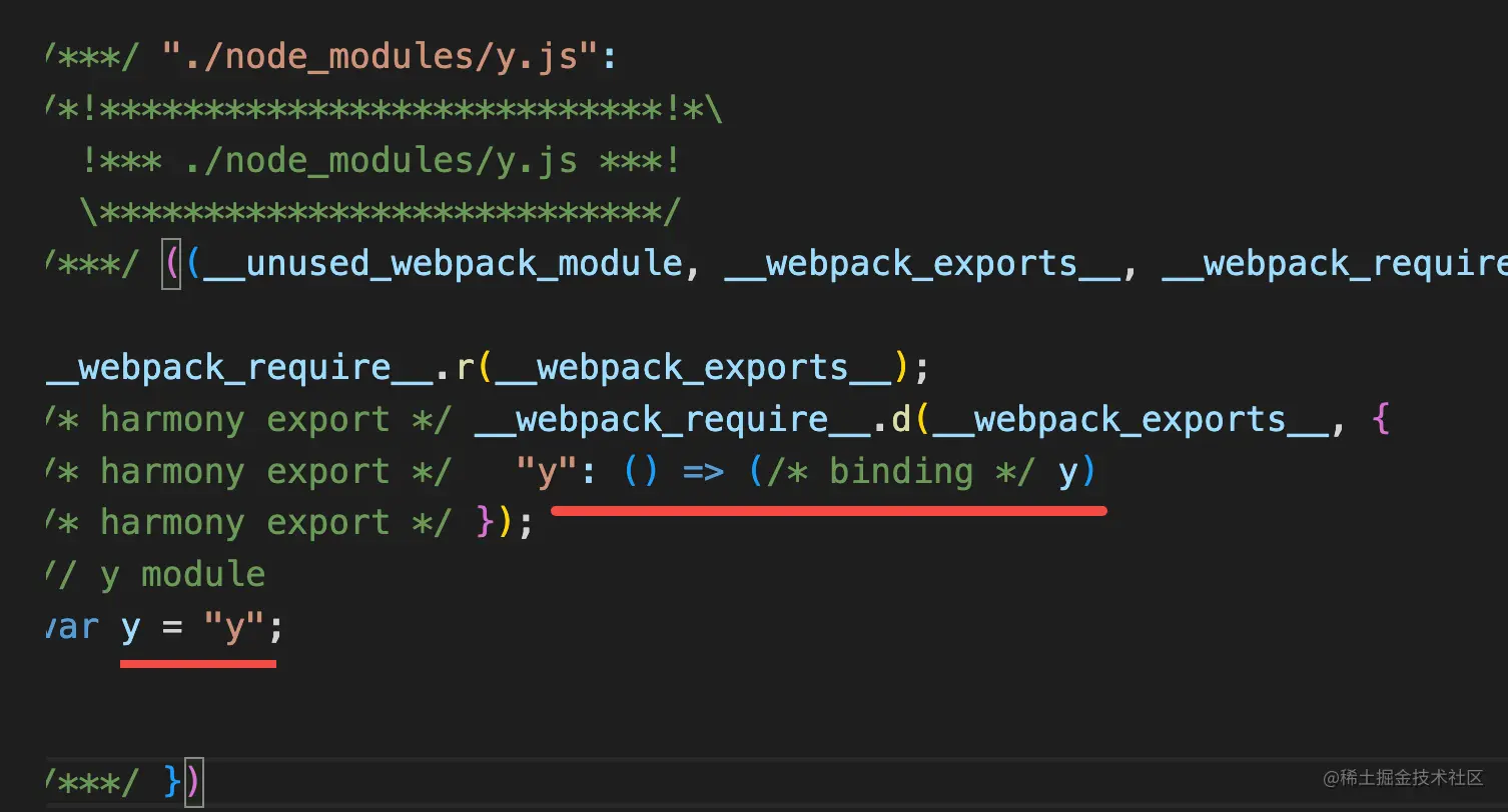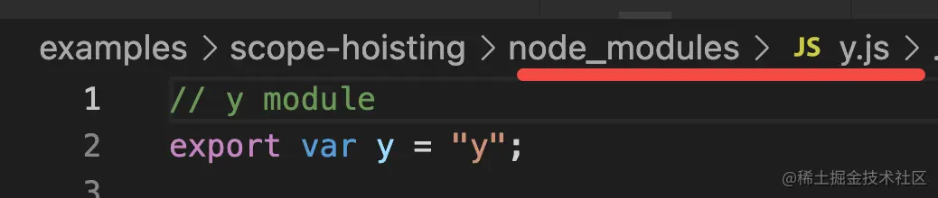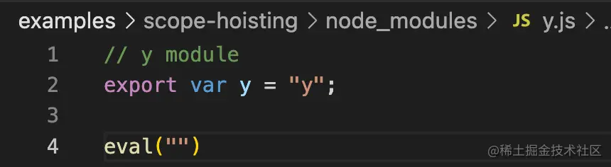 其他 3 个模块都被 scope hositing 了,就是这个 y 变成了从别的模块引入的方式。