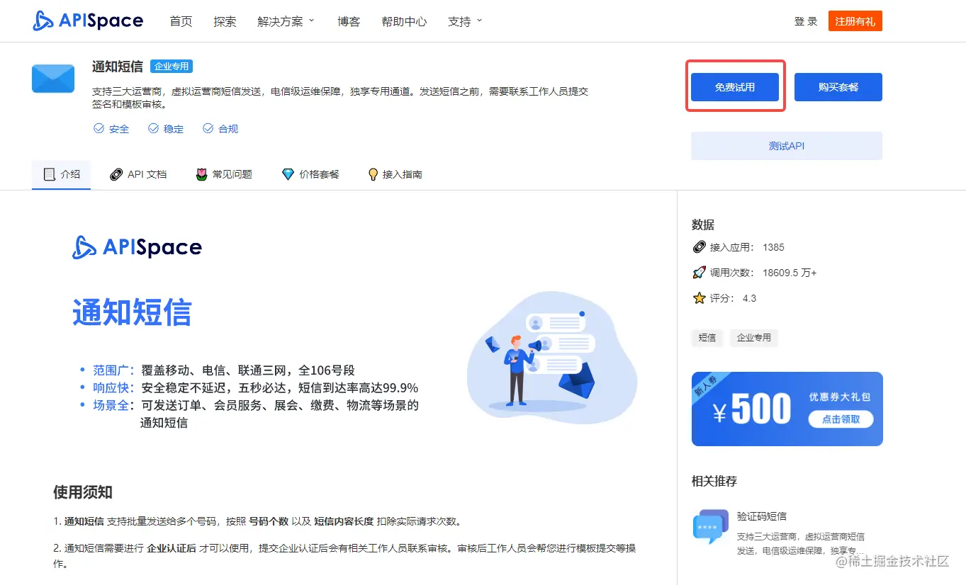 以 APISpace 为例,首先我们点击【免费试用】后,完成登录注册,
