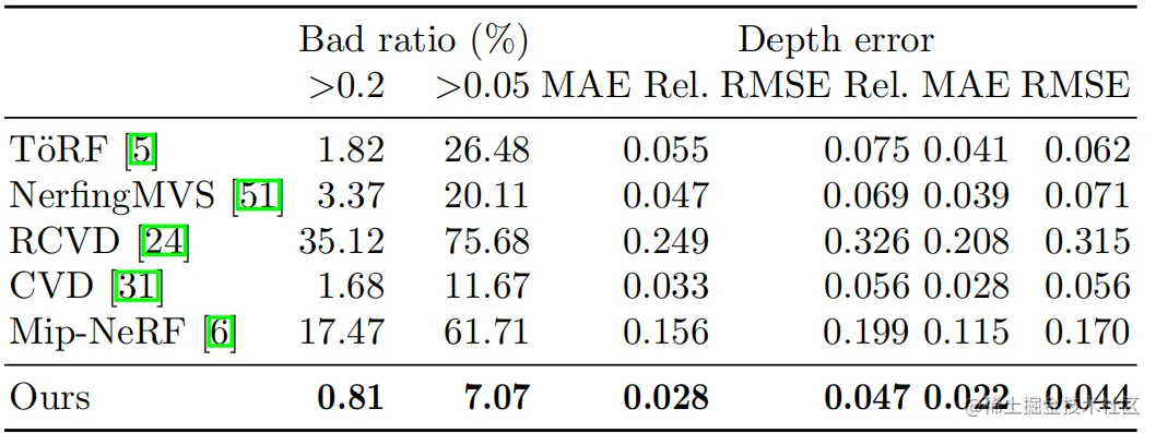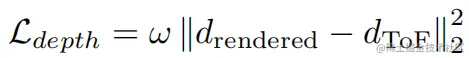 本文使用的是MipNeRF作为多视图深度的baseline。这可以很自然地处理ToF和RGB相机之间的分辨率差异。对于深度监督,本文使用一种简单的方法,类似于VideoNeRF使用多视图三维重建的逆深度图进行监督的思路,我们在优化中添加了一个使用深度样本的损失项: