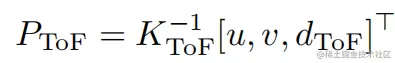 第一步是将ToF深度投影到超广角相机1. 将ToF深度转换为ToF点云: