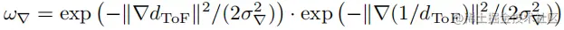 由于ToF在深度不连续处不太可靠,我们认为深度梯度较大的区域不太可靠: