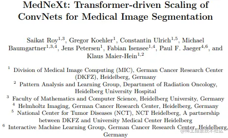 ConvNeXT是一种纯卷积模型,其灵感来自Vision Transformers的设计,性能出众。本文对此进行了改进,以设计一个现代化且可扩展的卷积架构——MedNeXt,该架构针对医学图像分割领域进行了针对性的优化。