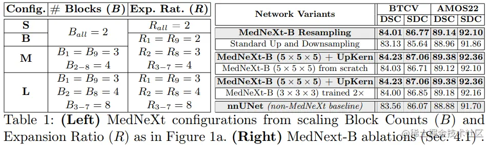 综上所述,以上操作为 MedNeXt 带来了一种简单但有效的初始化技术,可帮助大卷积核网络克服医学图像分割常见的相对有限的数据场景中的性能饱和。