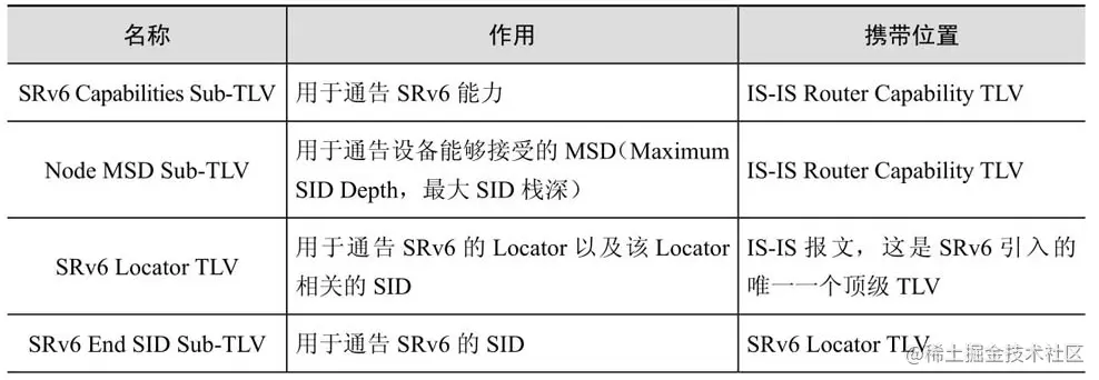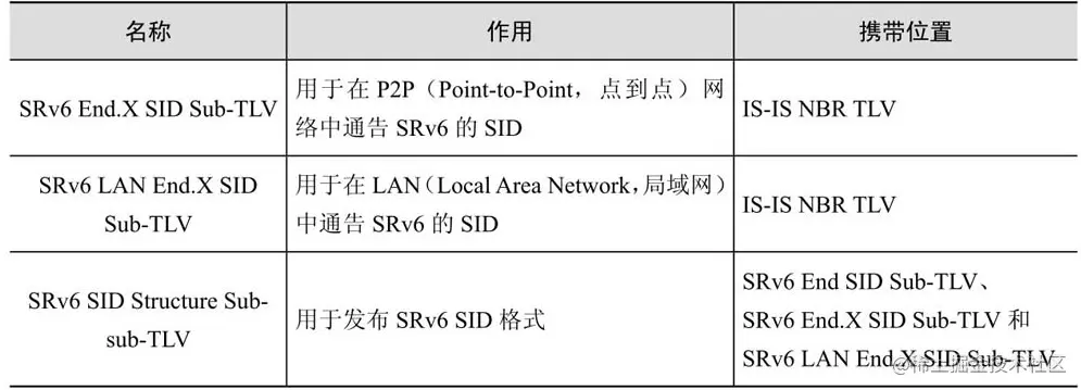 IS-IS协议针对SRv6的TLV扩展如表3-2所示 [4-5]。