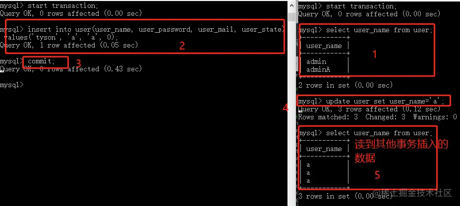 - 不可重复读是指在对于数据库中的某行记录,一个事务范围内多次查询却返回了不同的数据值,这是由于在查询间隔,另一个事务修改了数据并提交了。