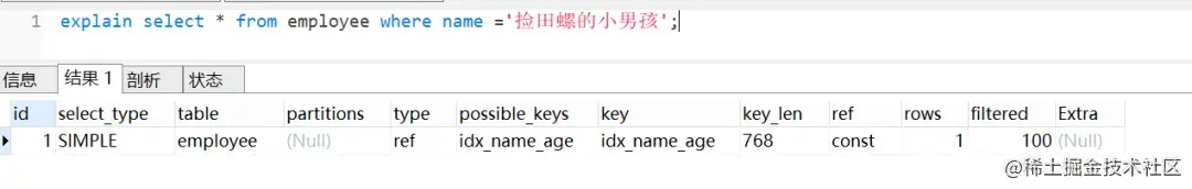 其中,name和age为联合索引(idx_name_age)。