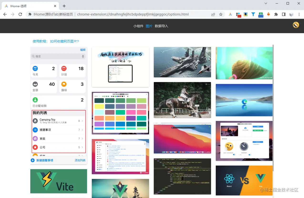 IHome主页插件提供了图片收藏和文本收藏功能。用户可以将自己喜欢的图片或者文本保存到收藏夹中,方便以后查看或者分享。