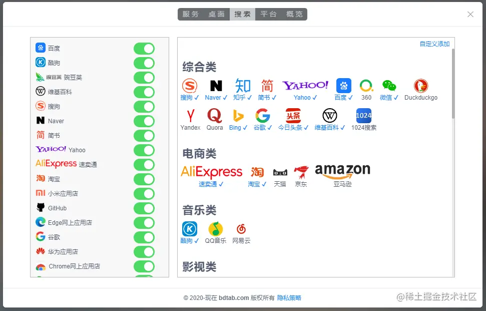 可以自定义搜索引擎,方便搜索信息;