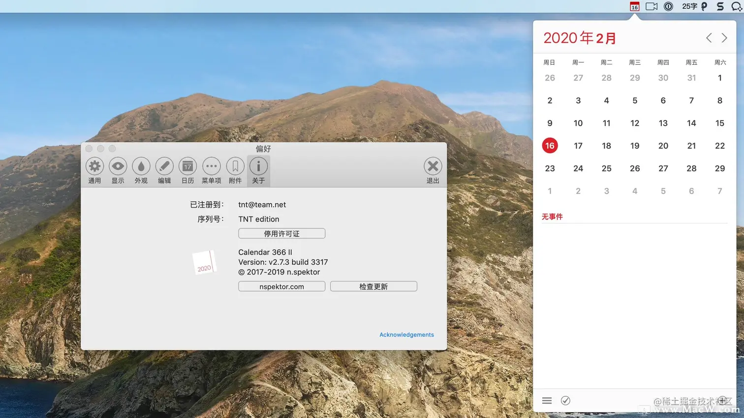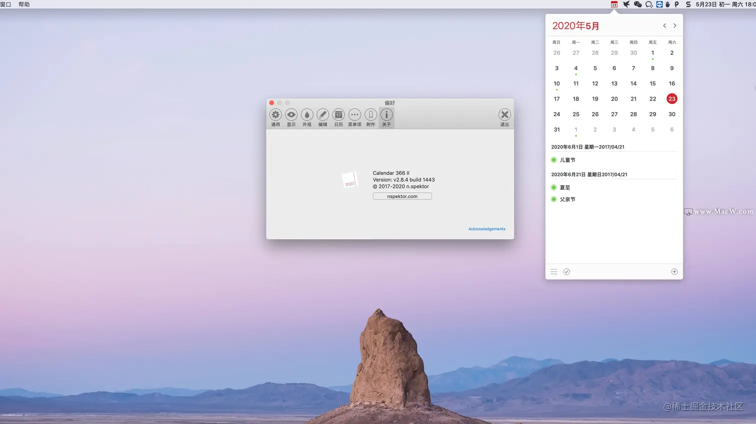 Calendar 366 II mac版是一款mac菜单栏日历提醒工具,它比系统自带的日历功能更加强大,界面更加简洁、轻巧。每个操作都可以从菜单栏执行,添加事件,搜索条目或只是导航日历。让您的生活和工作更加有条理,让您尽可能轻松地安排日程安排。