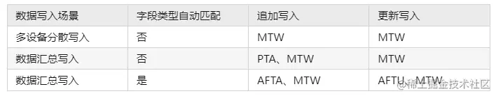 以下就追加写入和更新写入场景提供了更全面的选择参考: