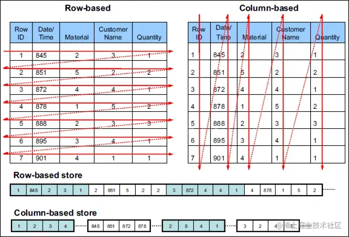 传统的开发人员通常对关系型数据库的行式存储(Row-Based)比较熟悉,数据按单行或多行的方式提交并写入,这种写入方式很容易理解,但是基于行式存储的数据库实际上并不是为大数据处理而设计的,海量数据的写入很容易遇到性能瓶颈。