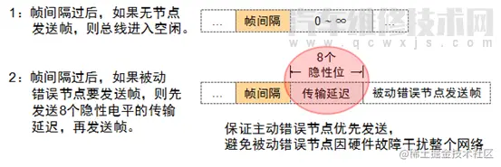 当发生这五种错误之一时,发送节点或接受节点将发送错误帧