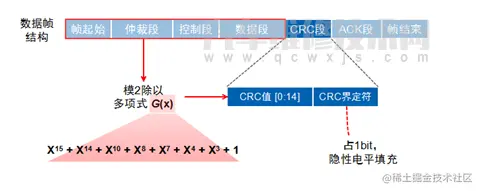CAN总线有5个连续相同位后,就插入一个相反位,产生跳变沿,用于同步。从而消除累积误差。