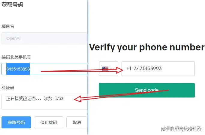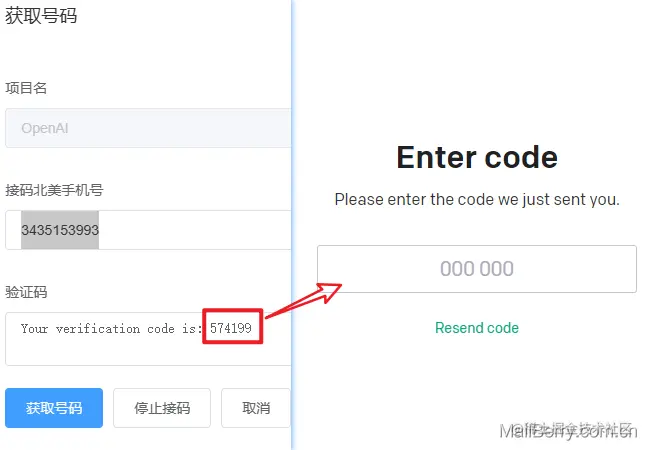 在验证码处,把接收到的验证码填回chat.openai.com,会自动完成