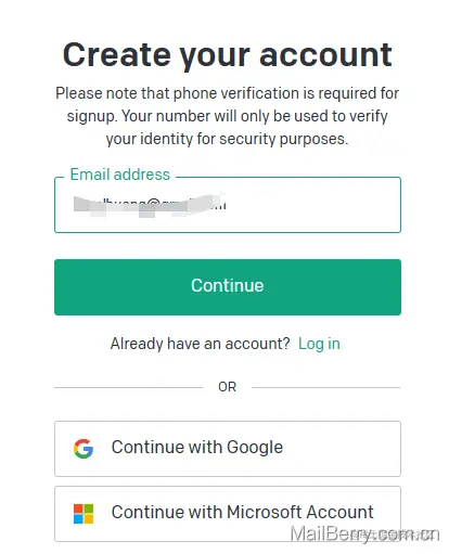 也可以使用谷歌账号或者微软账号直接登录,跳过验证邮箱流程