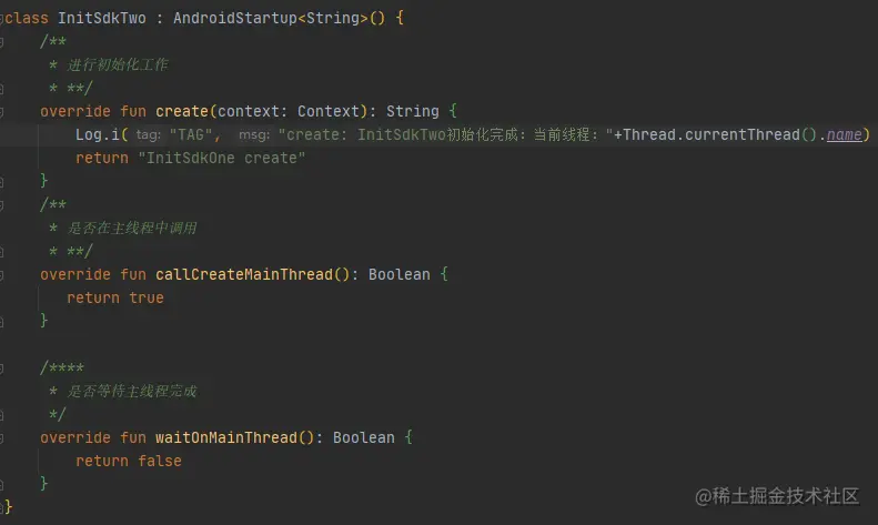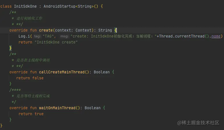 1.分别定义两个SDk初始化任务InitSdkOne和InitSdkTwo,继承于AndroidStartup抽象类。